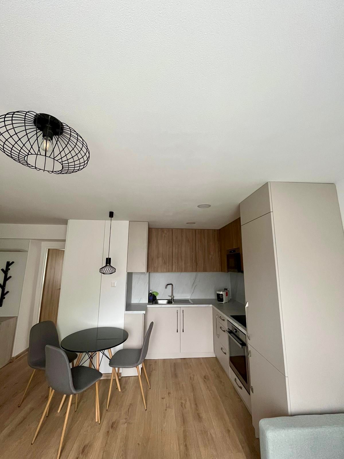 • útulná obývacia izba prepojená s kuchyňou, jedálenský stôl s 3 stoličkami